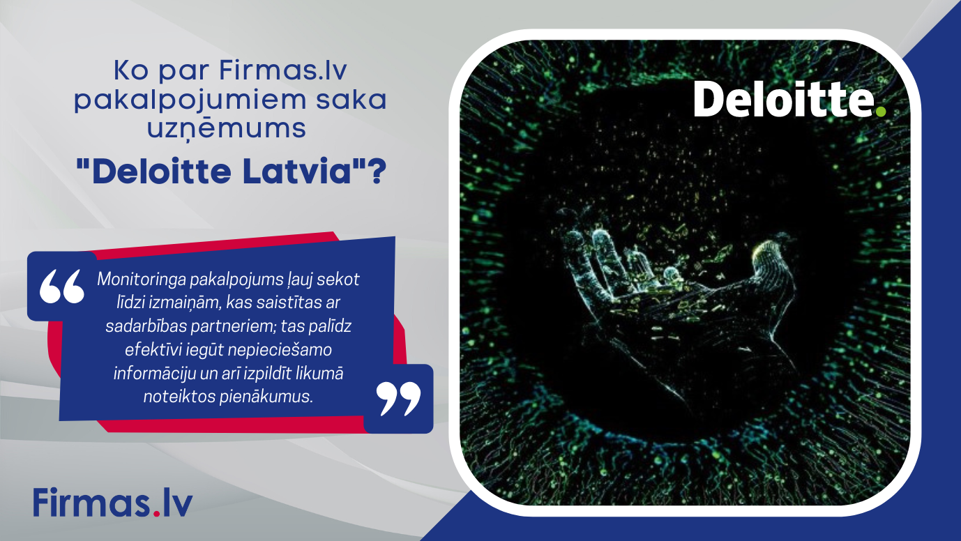 Katrs bizness ir atšķirīgs un katram ir savas vajadzības, bet monitoringa pakalpojums ļauj sekot līdzi izmaiņām, kas saistītas ar sadarbības partneriem; tas palīdz efektīvi iegūt nepieciešamo informāciju un arī izpildīt likumā noteiktos pienākumus, turklāt – nevis manuāli sekojot līdzi uzņēmumu datu izmaiņām, bet katru rītu saņemot aktuālo informāciju e-pastā. Papildus datubāzes izmantošanas iespējai Firmas.lv datu monitorings ir svarīga pievienotā vērtība, mūsu gadījumā monitorings ir ļoti būtisks.