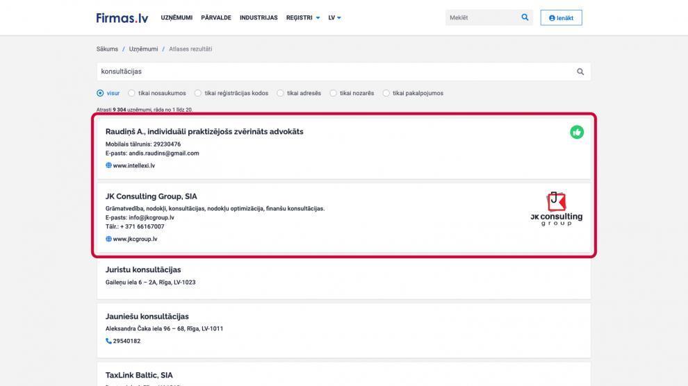 - uzlabot atrodamību Google un citos meklētājos, kā arī pašā Firmas.lv portālā,
