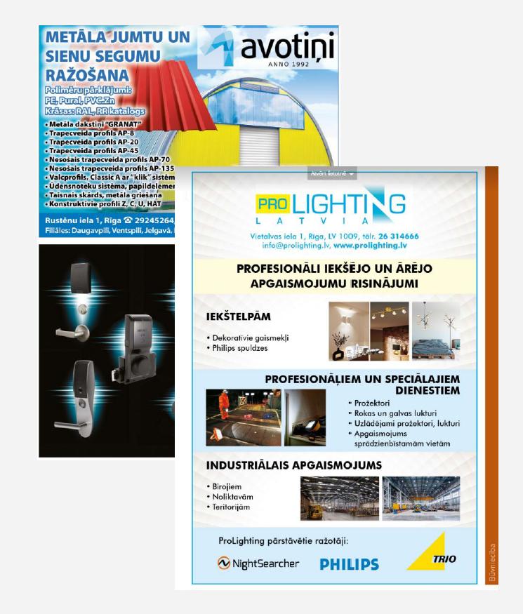 Firmas.lv portālā tiek piedāvāta iespēja izvietot arī reklāmrakstus, kas ļaus plašāk pastāstīt par savu uzņēmumu, to, ko tas piedāvā un kā var palīdzēt, labvēlīgi ietekmējot arī tava uzņēmuma atrodamību internetā un veicinot auditorijas uzticamību. Reklāmraksti būs redzami gan tava biznesa profila sadaļā “Vairāk par uzņēmumu”, gan arīdzan Firmas.lv pirmās lapas sadaļā “Firmas.lv klientu jaunumi”