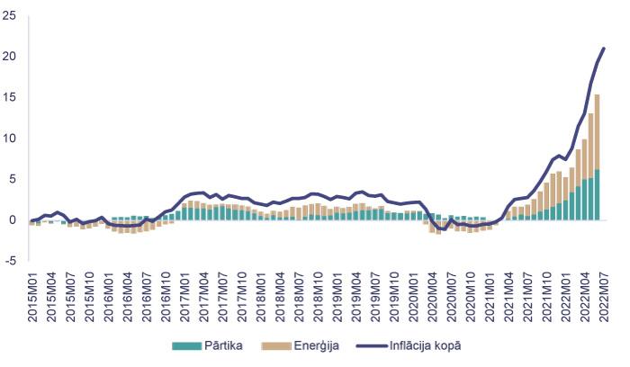 Detalizēti straujās inflācijas kāpuma iemesliem pieskāros šā gada martā. Sākuma grūdienu deva ekonomikas atkopšanās no Covid 19 krīzes un ar to saistītie faktori, t.sk., cenu kritums pandēmijas sākumā, patēriņa pārbīde no pakalpojumiem uz precēm, piegādes ķēžu problēmas. Atbalsta programmas ļāva gan izvairīties no augsta bezdarba, gan izveidot uzkrājumus un ātri atgūties patēriņam. Būtiska loma bija notikumiem Eiropas enerģētikas tirgū saistībā ar zemo nokrišņu daudzumu un vājo vēja enerģijas izstrādi, kā arī atomenerģijas jaudu samazināšanos. Krievijas uzbrukums Ukrainai 2022. gada 24. februārī krasi pasliktināja situāciju un pacēla inflāciju jau pavisam citos augstumos. Strauji kāpa globālās energoresursu un pārtikas cenas, iepriekšējiem negatīviem piedāvājuma puses šokiem liekot klāt arvien jaunus.