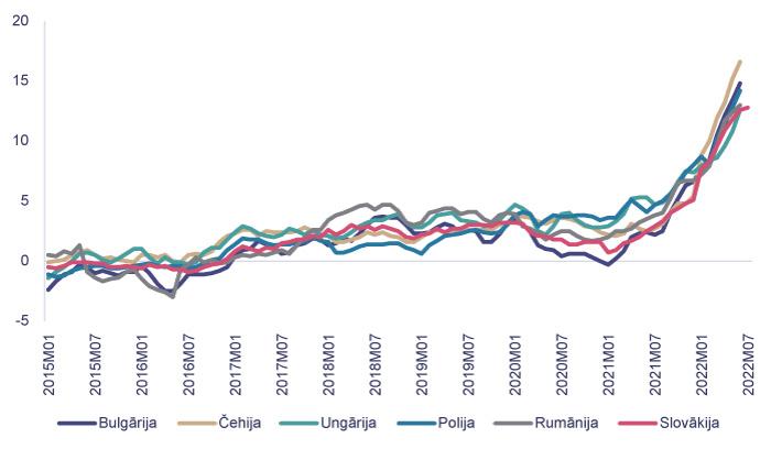 Ņemot vērā inflācijas dzinuļu globālo raksturu, arī citās eiro zonas valstīs situācija ir diezgan līdzīga. Piemēram, 2008. gadā, kad Latvijā inflācijas līmenis bija tuvs pašreiz novērotajam, Vācijā tas svārstījās ap 2–3%. Pašlaik inflācija Vācijā ir pārsniegusi 8%, kas ir kopš Otrā pasaules kara nepieredzēts līmenis. Cenas kāpj strauji arī tajās Eiropas valstīs, kuras nav ieviesušas eiro. Augsta inflācija pašreiz ir globāla problēma.