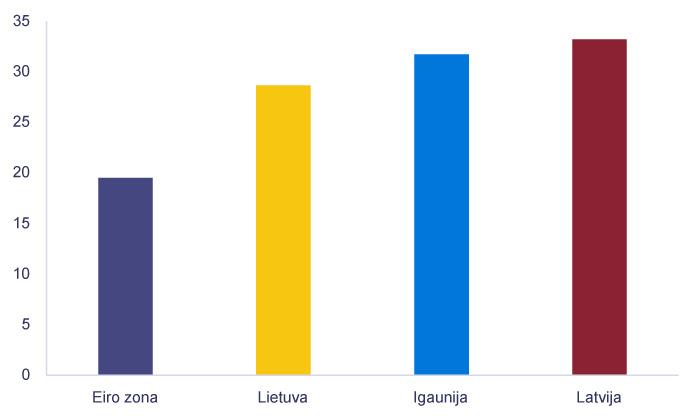 Pirmkārt, atbilde meklējama patēriņa struktūrā. Latvijas iedzīvotāji lielāku savu ikdienas izdevumu daļu tērē pārtikai un energoresursiem – tātad tieši tām produktu kategorijām, kurās vērojams lielākais cenu kāpums pasaules tirgos. Proti, Latvijā aptuveni 40% no iedzīvotāju tēriņiem aiziet pārtikai un energoresursiem, bet eiro zonā – vidēji 26%. Kaut arī šo produktu cenu pārmaiņas nosaka norises pasaules tirgos un tās dažādās valstīs ir līdzīgas, Latvijas iedzīvotāju pirktspēju un inflācijas rādītāju pārtikas un energoresursu cenu kāpums ietekmē vairāk.