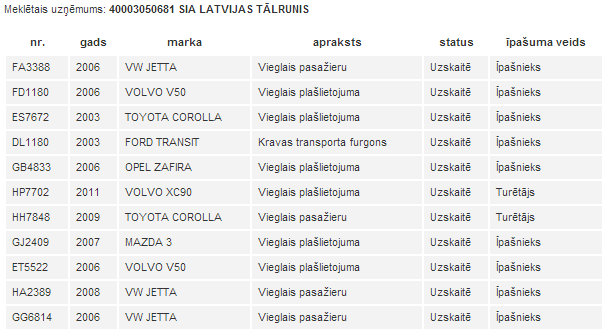 - Juridiskās personas transportlīdzekļi Izziņas par uzņēmumu transportlīdzekļiem