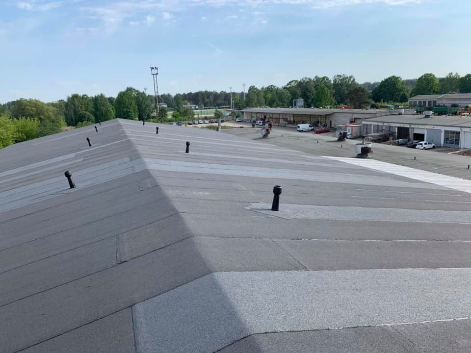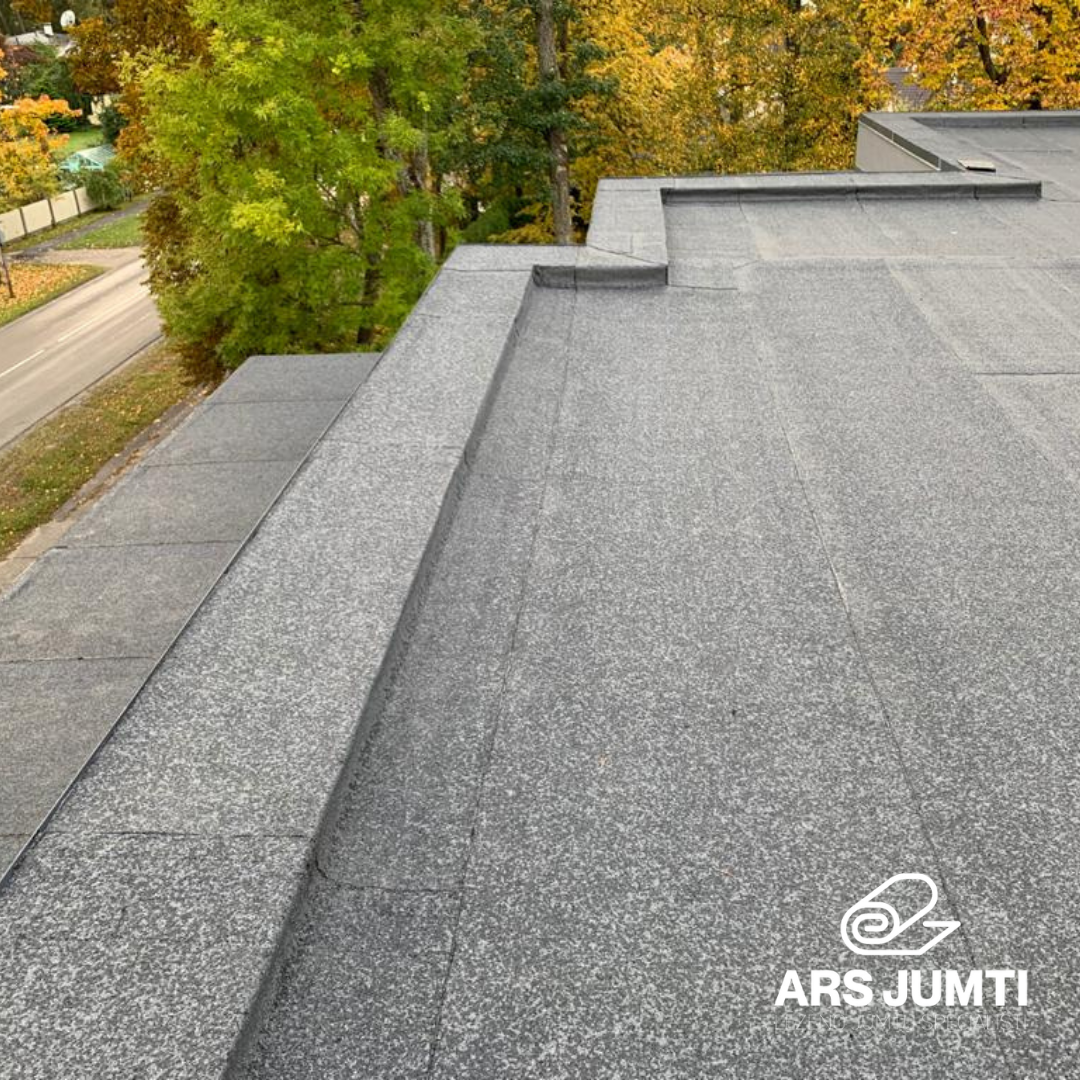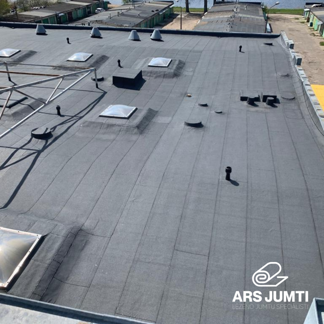 Jumti, lēzenie jumti, Lēzeno jumtu remonts un diagnostika, Jumta seguma darbi komercēkām, Hidroizolācijas ieklāšana, Skārda detaļu uzstādīšana, Siltināšanas darbi, Seguma remonts, Jumtu diagnostika, jumta seguma tīrīšana.