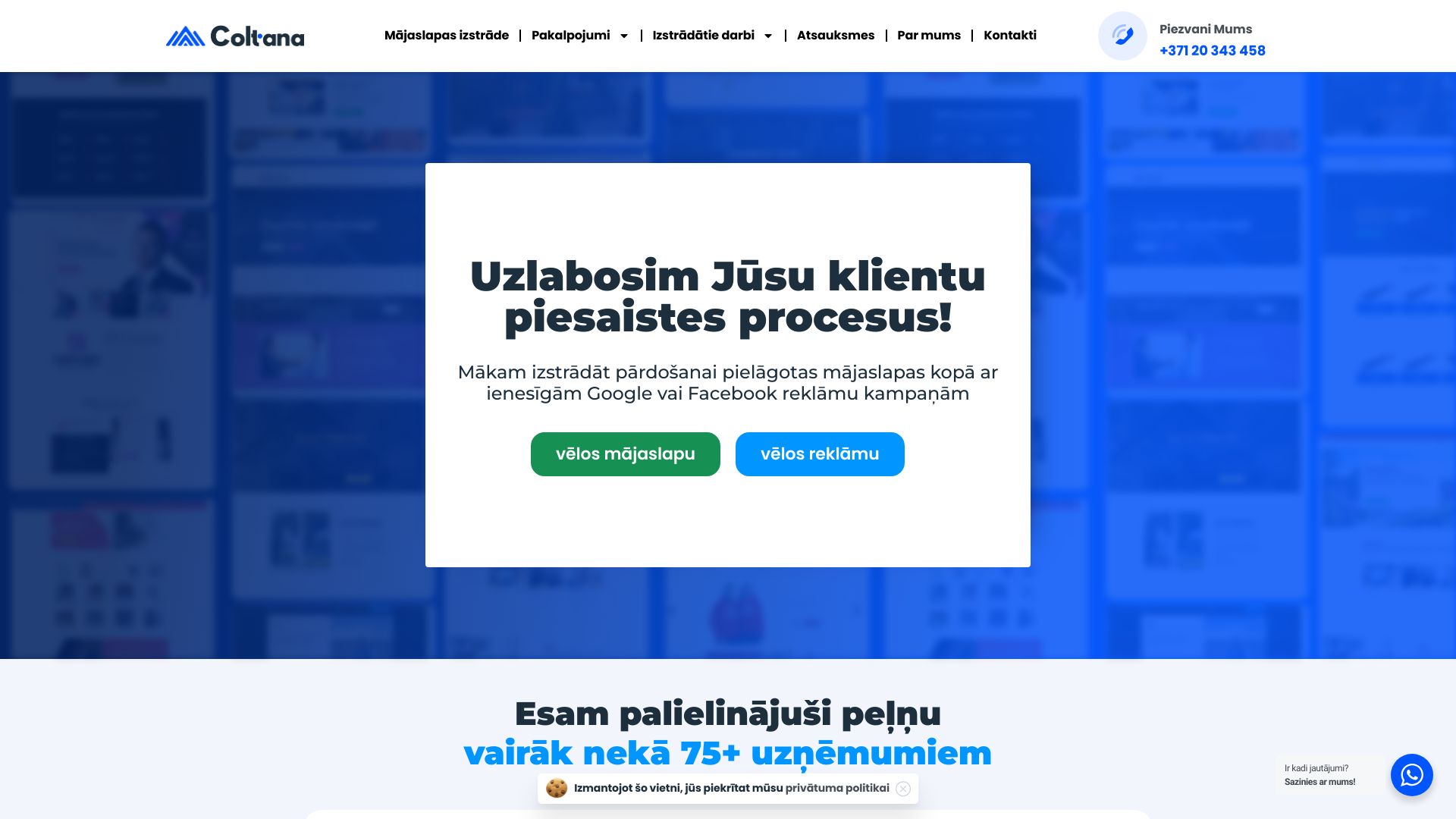 | Apraksts | "Coltana" ir uz rezultātu orientēta digitālā mārketinga aģentūra. Piedāvājam pilna cikla digitālā mārketinga pakalpojumus. Sākot ar uzņēmuma tēla izstrādi un mājaslapas izveidi, līdz pat sociālo tīklu pārvaldei un digitālas reklāmas izvietošanai. |