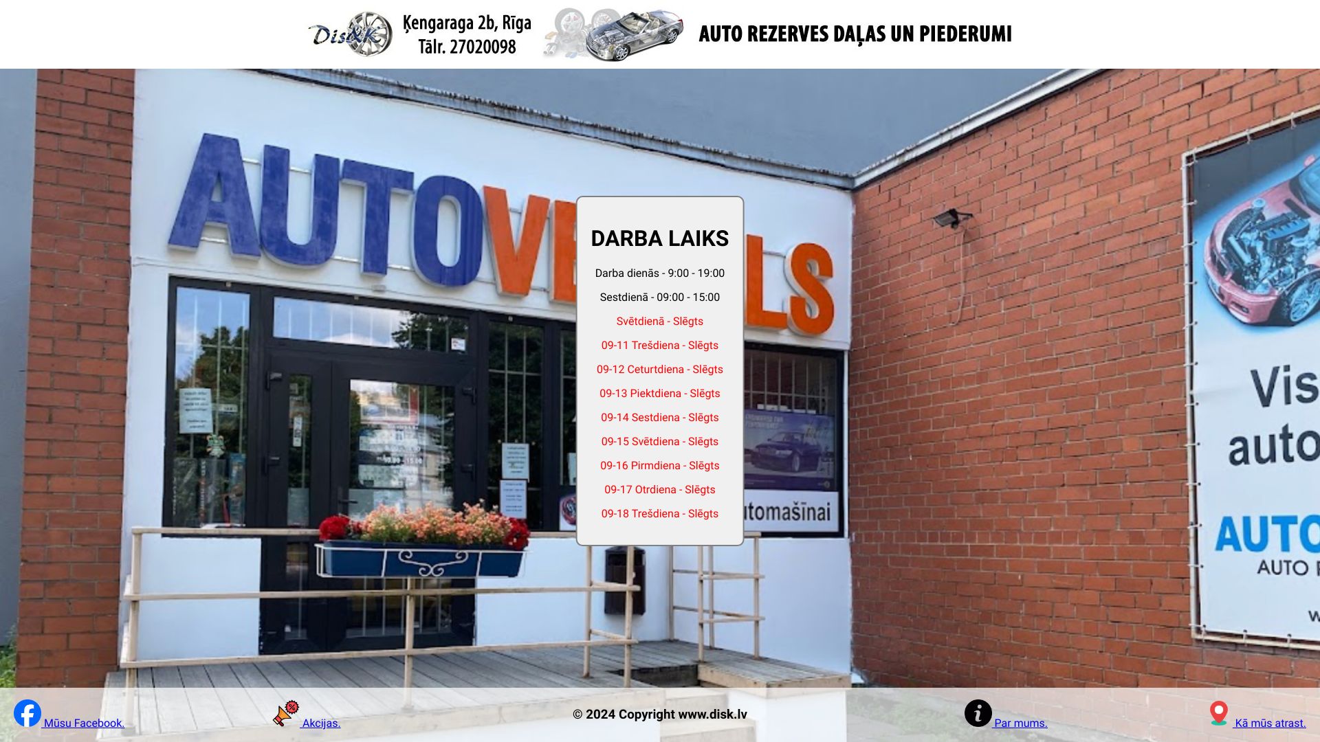 | Par uzņēmumu | SIA "Dis & K" ir uzņēmums, kas specializējas auto rezerves daļu un piederumu tirdzniecībā. Mēs piedāvājam visu nepieciešamo jūsu automobiļa remontam un tehniskajai apkopei. Dibināts 2003. gadā, uzņēmums nosaka jaunus standartus auto rezerves daļu pārdošanā, klientu apkalpošanā un pakalpojumu kvalitātē. |