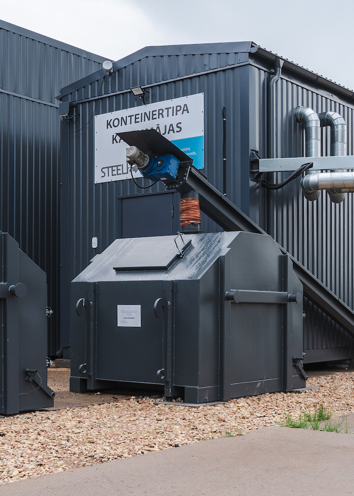 Mobilās katlumājas. Katlu mājas pamata komplekts. Standarta katla konteiners. Efektīvs apkures risinājums. Efektīvs apkures risinājums. Kurināmā uzglabāšanas konteineri. Pelnu konteineri. T3 īpaši kompakta moduļu katlu māja 250kw. Visaptverošs produktu klāsts. Sertificēta metināšana. Sertificēti skursteņi. Celtņi. Skrošu apstrādes kamera ar reģenerācijas sistēmu. Augstspiediena bezgaisa krāsošana. Metināšanas iekārtas. CNC plazmas griešanas iekārta...
