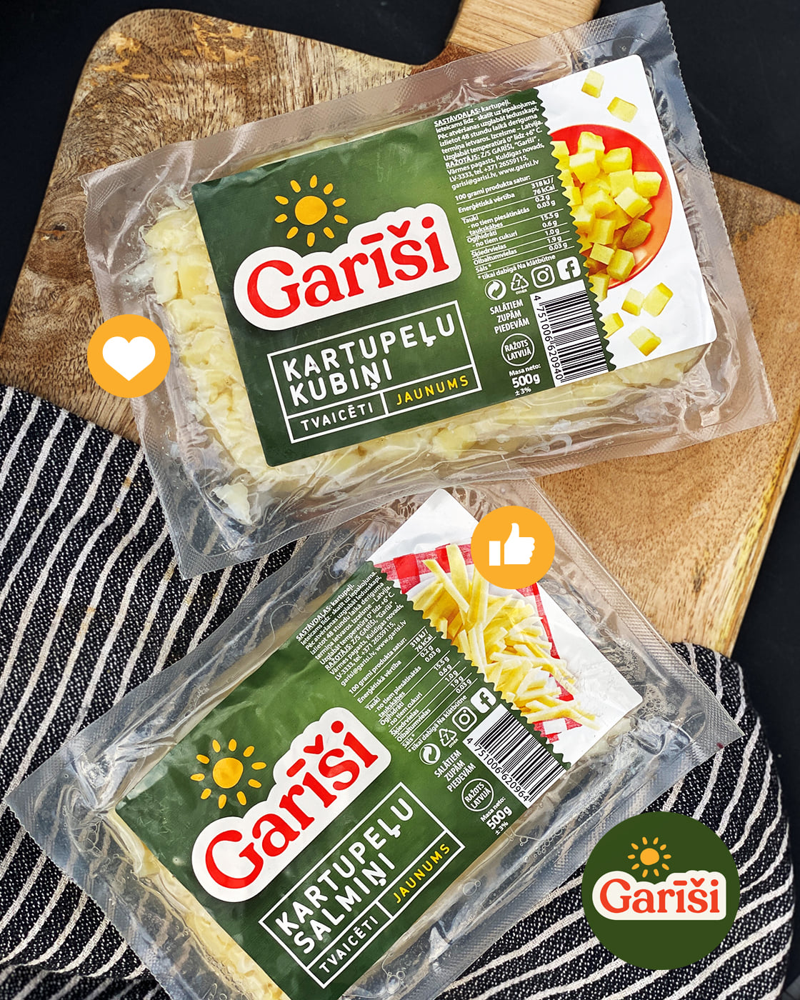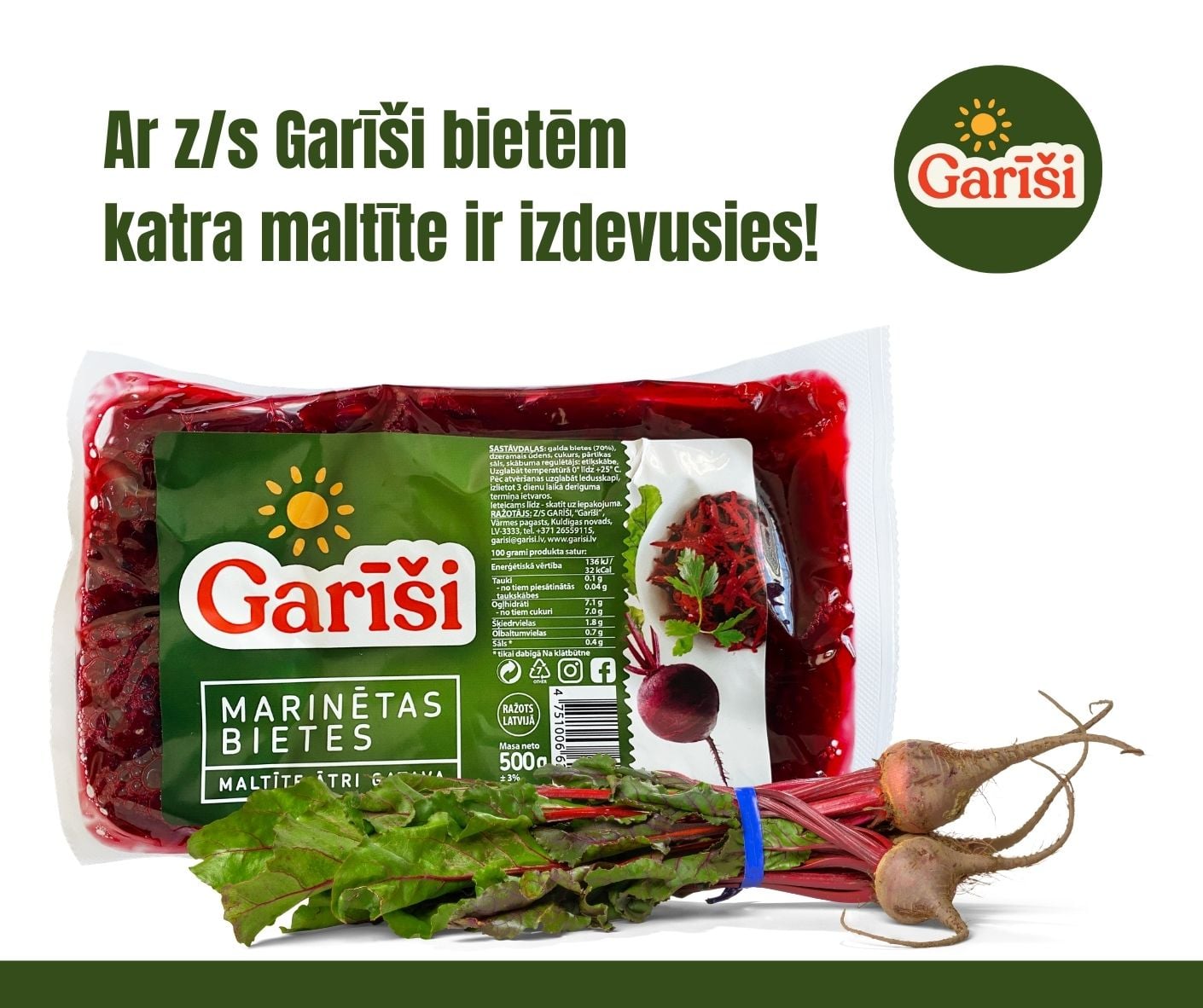 | Apraksts | ZS „Garīši” dibināta 1995. gadā. Veiksmīga biznesa un klientu uzticības rezultātā. „Garīši” ir ieņēmuši stabilu vietu starp vadošajiem skābēto un sautēto kāpostu ražotājiem Latvijā. Piegādājam savu produkciju gan vairumtirdzniecībai, gan mazumtirdzniecībai, esam gatavi sadarboties ar jebkuru klientu un atrast abpusēji izdevīgus risinājumus sadarbībai. Plašs produkcijas klāsts - vārīti un fasēti dārzeņi (bietes, burkāni, zirņi, pupiņas). Kāposti - skābēti, marinēti, sautēti, svaigi. Svaigi dārzeņi. |
