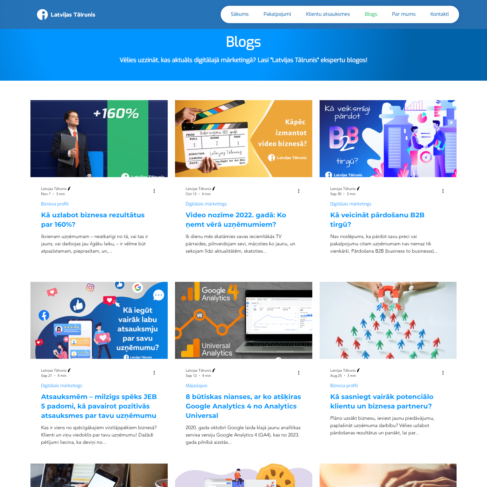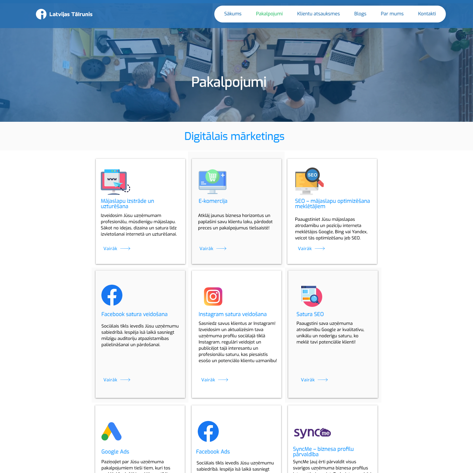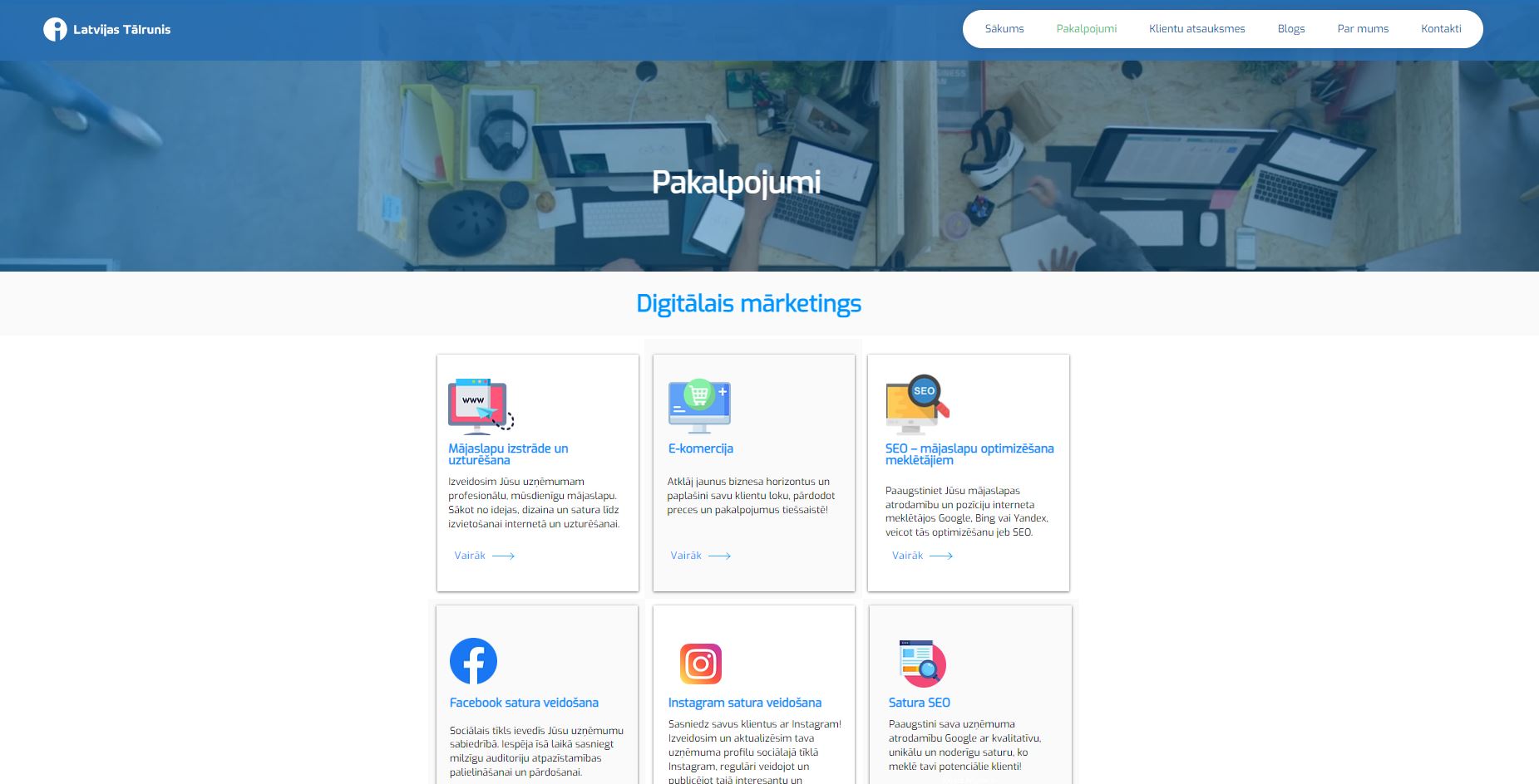| Digitālais mārketings | Pilna servisa digitālais mārketings nelieliem un vidējiem uzņēmumiem. Palīdzam izstrādāt digitālā mārketinga stratēģiju un sasniegt biznesa mērķus jau vairāk nekā desmit tūkstošiem Latvijas uzņēmumu. Nodrošinām tādus digitālos pakalpojumus kā mājaslapu izstrāde un uzturēšana, E-komercija, SEO mājaslapu optimizēšana apmeklētājiem, biznesa profilu izstrāde un uzturēšana, biznesa profilu pārvaldība, Google Ads reklāmas, Google Business Profile reklāmas, Facebook reklāmas, Facebook satura veidošana, Instagram satura veidošana, Linkedin satura veidošana, video saturs, Firmas.lv segmentēto datu atlase un citus. Piedāvājam ne vien pakalpojumu izstrādi, bet arī efektīvu uzturēšanu, veicot nepieciešamos uzlabojumus un nodrošinot regulāras atskaites par paveikto. "heise marketing" pārvaldībā ir arī vairāki uzziņu un informatīvie mediji - informācijas portāli 31 Latvijas pilsētai Pilseta24.lv, biznesa uzziņu portāls ZL.lv, būvniecības nozares portāli ABC.lv un building.lv, veselības portāls Medicine.lv, portāls visaigimenei.lv un eksporta nozares portāls balticexport.com. |