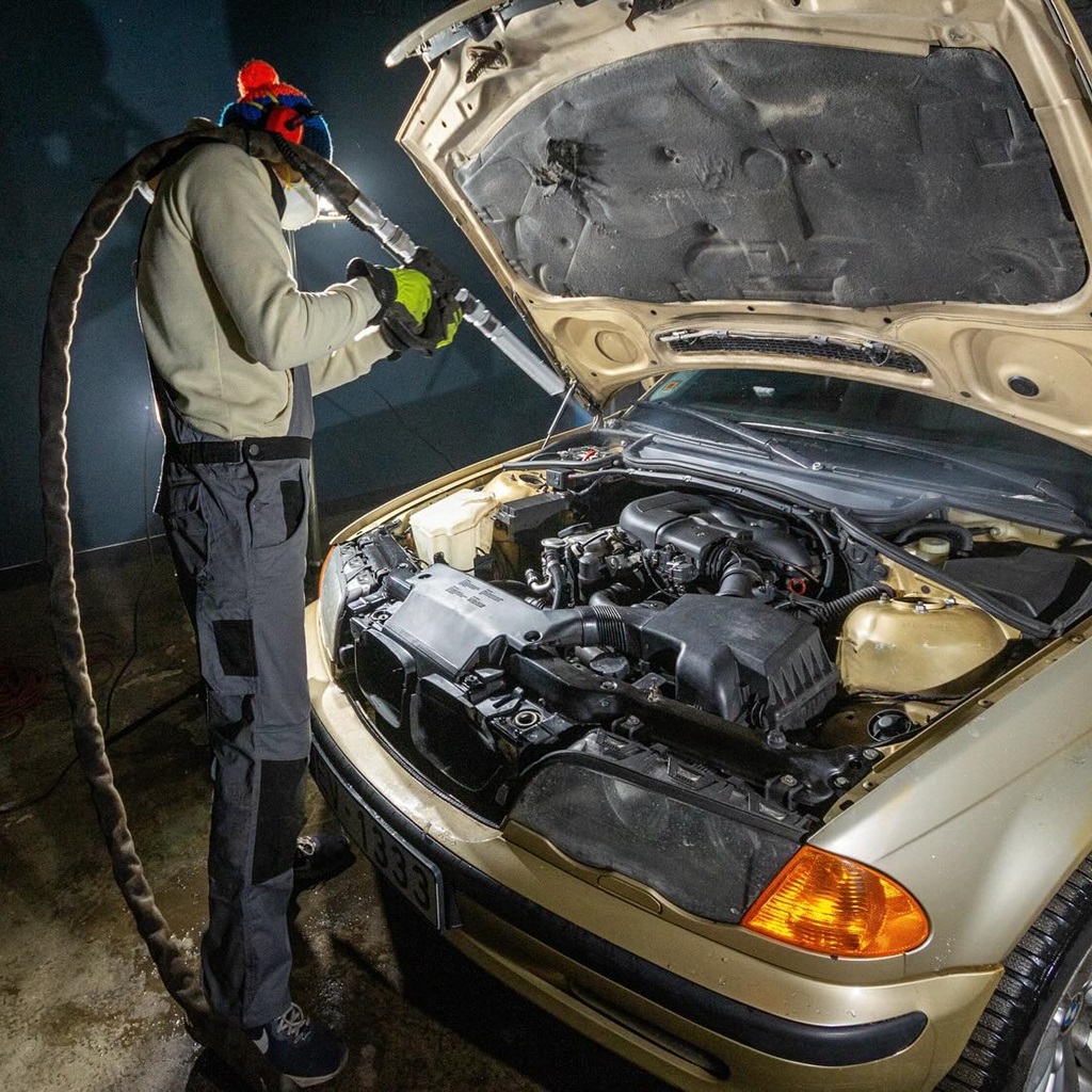 Dzinēja tīrīšana ar sausā ledus strūklu