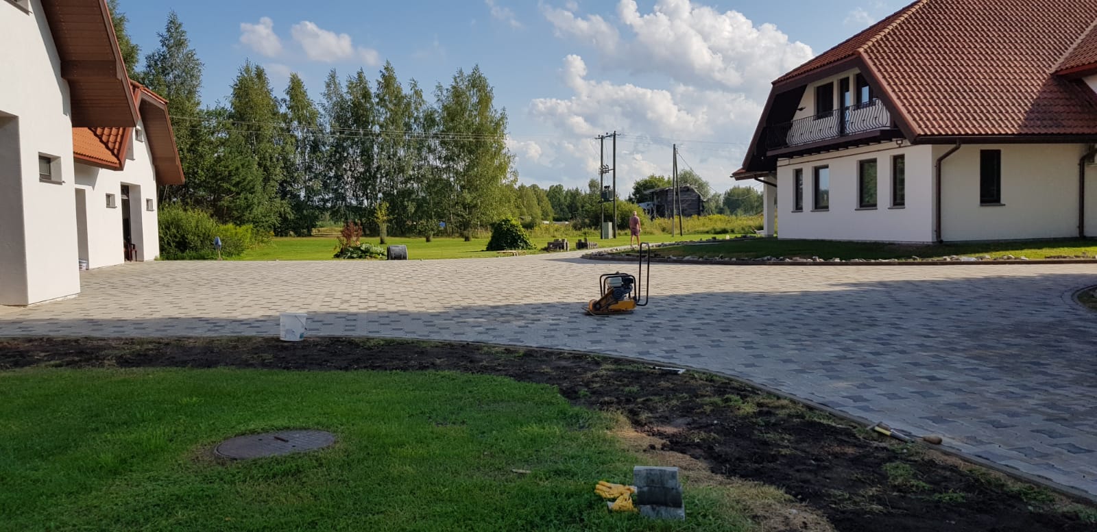 Labiekārtošanas darbi, teritoriju labiekārtošana, apzaļumošana, apzaļumošanas darbi, bruģēšana, bruģēšanas darbi, zemes darbi, zemes rakšanas darbi, zemes līdzināšana, zemes planēšanas darbi, beramās kravas, beramo kravu piegāde, traktortehnikas pakalpojumi, ceļu izbūve, Ekskavators, traktors, ceļš, piebraucamais ceļš, šķemba, smilts, melnzeme, grunts, bruģis, bruģa ieklāšana, ceļu būve, piebraucamo ceļu izbūve, servitūta ceļu izbūve, lauku ceļu izbūve,...