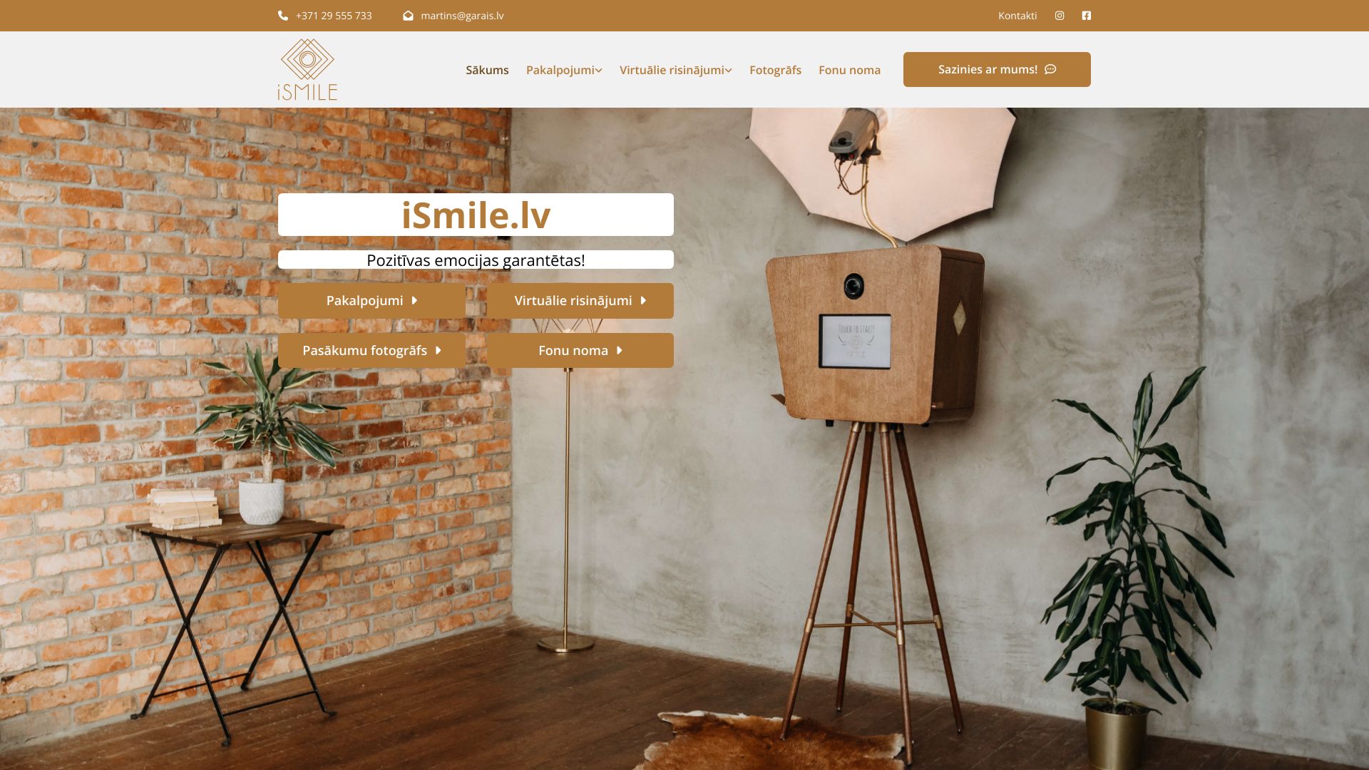 | Par mums | iSmile.lv – tas ir atraktīvs fotostūris, lai ikviens pasākuma viesis varētu būt pats savas bildes režisors! Neatkarīgi no tā, vai atrodies attālinātā ballītē ar draugiem, esi publiskā korporatīvajā pasākumā, kāzās vai dzimšanas dienā - iSmile.lv ir ar Tevi! |