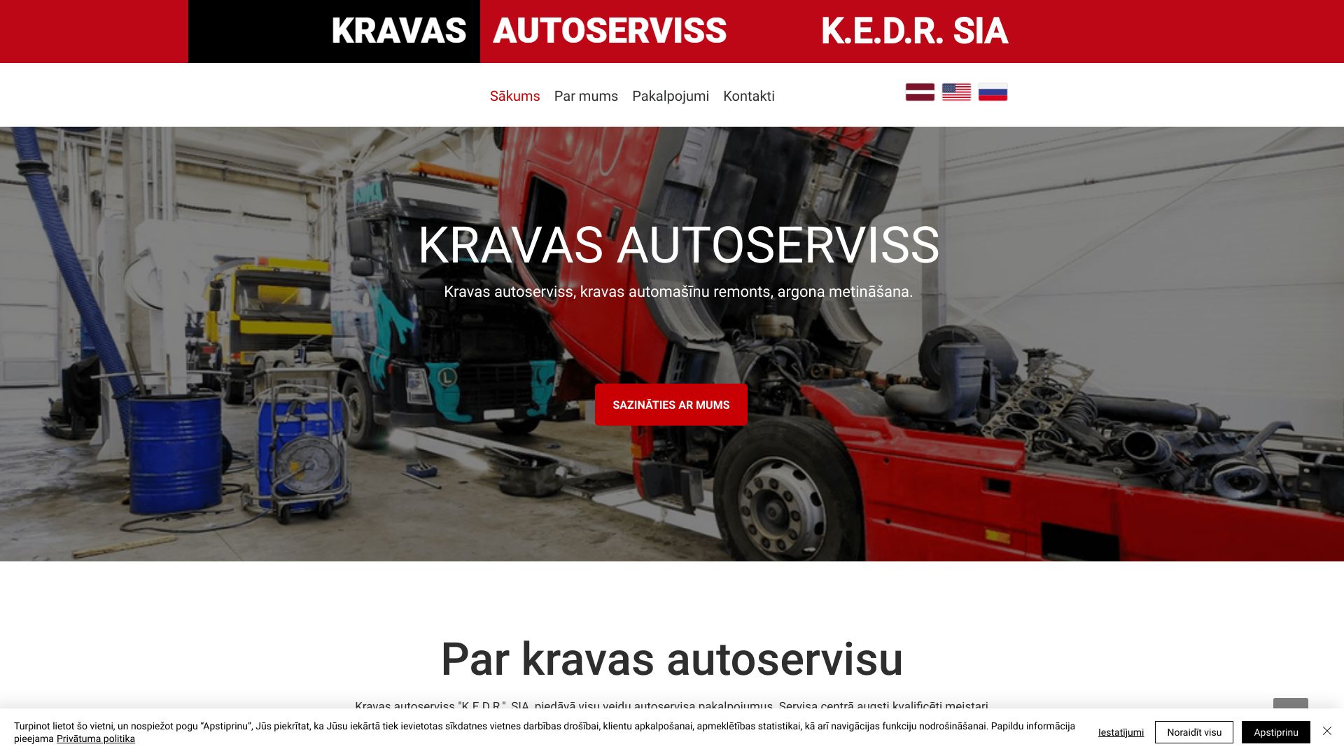Kravas autoserviss, kravas auto serviss. Kravas automašīnu remonts. Kravas auto remonts. Kravas rezerves daļas. Kravas auto, (automašīnu, automobiļu) datordiagnostika, (kompjūterdiagnostika). Kravas apkope. Bremžu remonts, starpbalstu remonts, ritošās daļas remonts, pārnesuma kārbas remonts, sajūga remonts. VOLVO, DAF, RENAULT, Scania, IVECO, Man, Schmitz, FRUEHAUF, KOGEL, Kronej, SAF, ROR, BPW. Kravas automašīnu remonts un apkalpošanas serviss. Kravas...