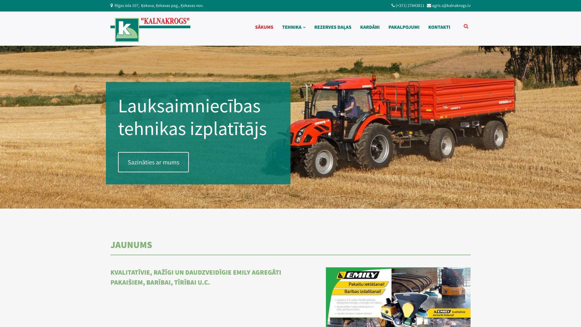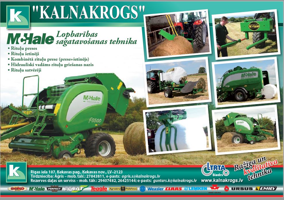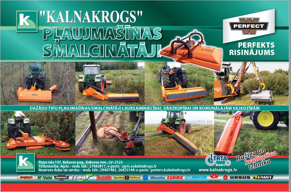 | "Kalnakrogs" - piedāvā lauksaimniecības, dārzkopības un vides kopšanas tehniku | "Kalnakrogs" ir 1992. gadā dibināts uzņēmums, kas nodarbojas ar lauksaimniecības, dārzkopības, komunālās un vides kopšanas tehnikas tirdzniecību, nomu un servisu. "Kalnakrogs" nodrošina arī augstas kvalitātes rezerves daļas un tehnisko atbalstu, konsultācijas. Uzņēmums ir "MCHALE", "SEKO", "PERFECT", "TEAGLE", "FRANSGARD", "AGROSTROJ PELHRIMOV", "BM TRACTORS", "HiSPEC", "ETESIA", "COSMA", "SEPPI", "BERTI", "WEASLER","CMN" un "CHARGEUR" tehnikas oficiālais importētājs Latvijā, vienlaikus pārstāvot tādus ražotājus kā "CLAAS", "LEMKEN", "MASSEY FERGUSON", "MASCAR", "FENDT", "AGRIC", "EPOKE", "URSUS", "D'AWINO" Group. |