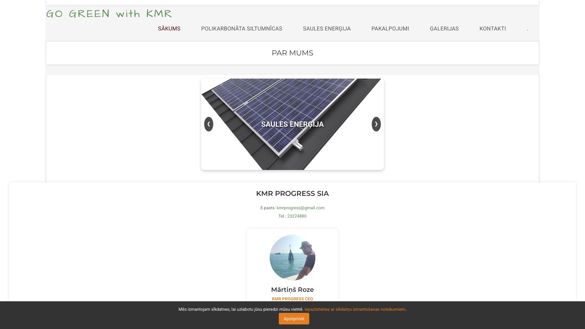 | Par uzņēmumu | SIA "KMR PROGRESS" ir uzticams partneris saules paneļu uzstādīšanas pakalpojuma nodrošināšanā. Mūsu uzņēmums ir uzkrājis, iespējams, vislielāko pieredzi tieši darbojoties ar dažādu ražotāju konstrukcijām priekš saules paneļiem. Esam, iespējams, vienīgais uzņēmums, kurš var palepoties ar veiksmīgi realizētiem projektiem ļoti dažādiem jumta segumiem. Mēs esam strādājuši ar vairākiem desmitiem konstrukciju variāciju uz katra no seguma veidiem. Esam realizējuši grandiozus projektus ne tikai Latvijā, bet arī Vācijā. Katrs mūsu realizētais projekts ir izsmalcināts, sniedzot inovatīvus un efektīvus risinājumus to izpildei. Mūsu dedzīgā komanda garantē augstāko kvalitāti un klientu apmierinātību, rūpējoties par mūsu vides nākotni un īstenojot ilgtspējīgu enerģijas risinājumu vīziju. |