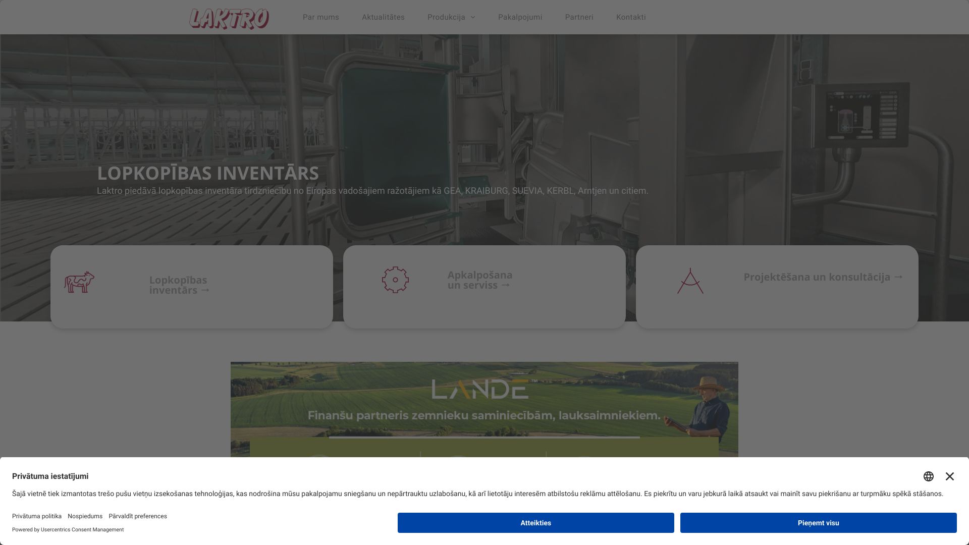 Piena lopkopības tehnikas iekārtas, slaukšanas iekārtas, kūts aprīkojums, barības piedevas, barība, lopbarības sagatavošanas materiāli, barības maisītāji - izdalītāji, kūtsmēslu izvākšanas, uzkrāšanas aprīkojums, lopkopības piederumi, piena dzesētāji, rezerves daļas, serviss, remonts. Barības piestumšanas robots.