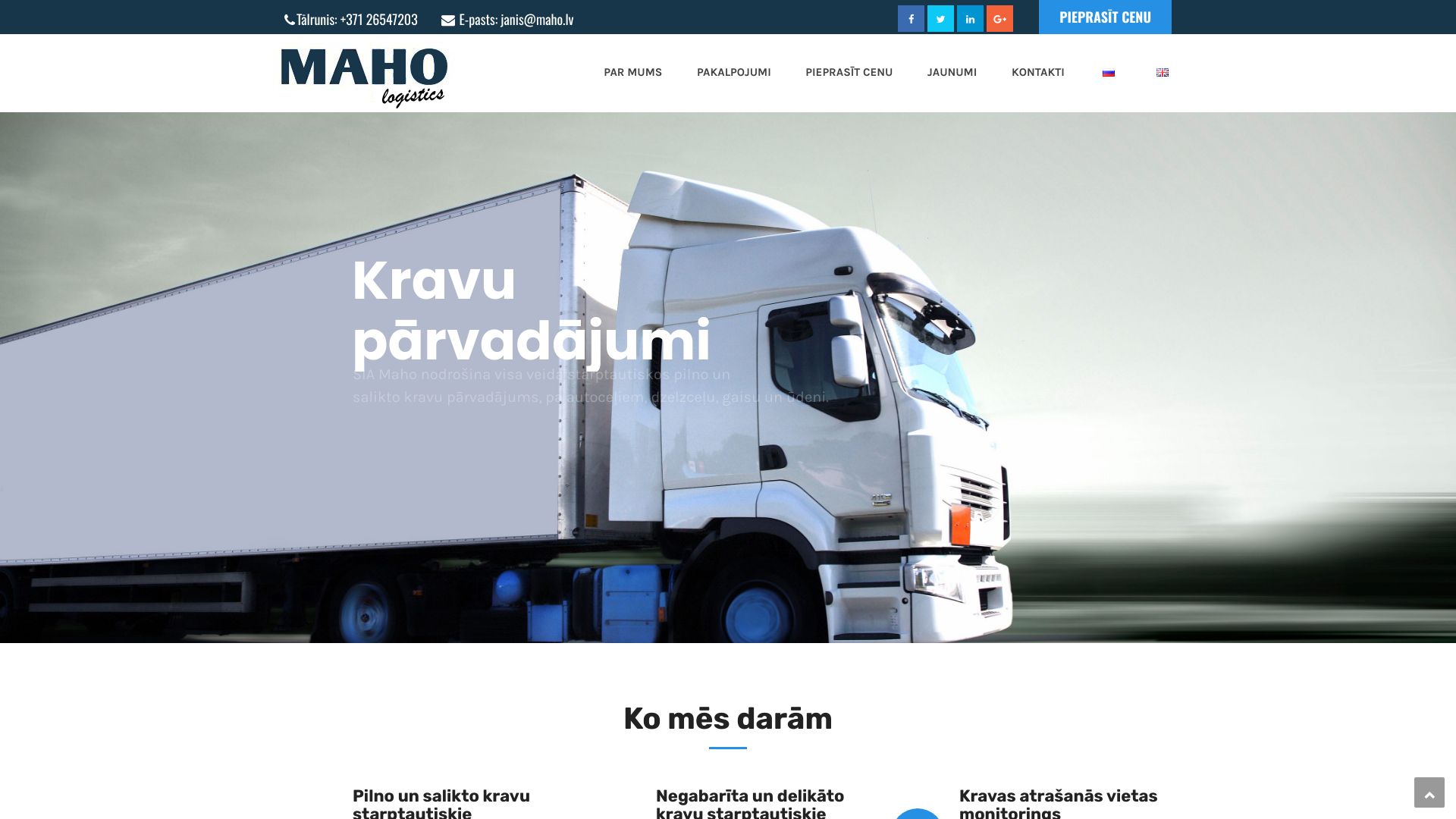 | Apraksts | SIA “Maho” ir transporta un loģistikas uzņēmums, kas saviem klientiem piedāvā augstākā servisa kravu vietējos un starptautiskos pārvadājumus ar autotransportu, jūras un dzelzceļa transportu, kā arī avio transportu. |