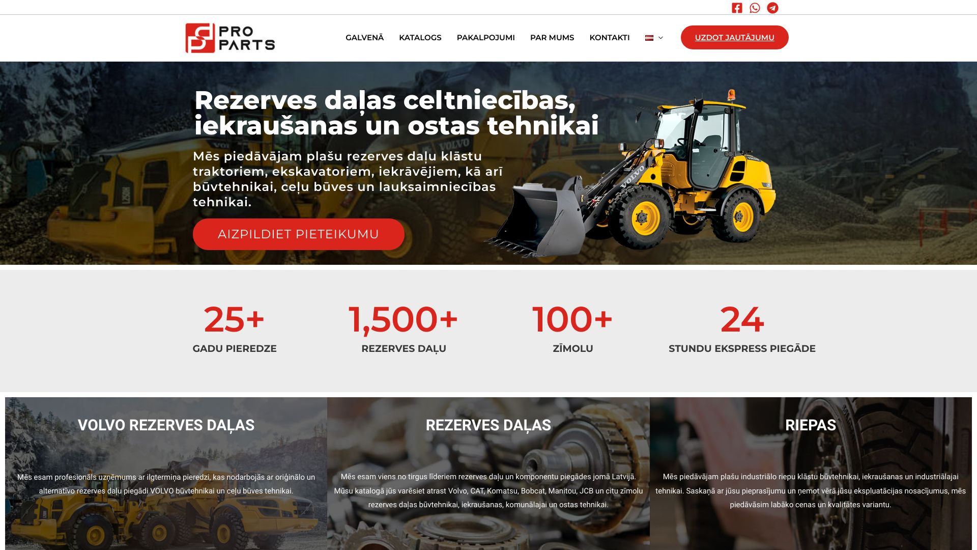 | Pro-Parts — VOLVO būvtehnikas rezerves daļu eksperts Latvijā | Pro-Parts, SIA specializējas oriģinālo un analogo VOLVO industriālās tehnikas rezerves daļu tirdzniecībā, nodrošinot arī industriālās riepas un plašu aksesuāru klāstu. Uzņēmums atrodas Rīgā, Skaistkalnes ielā 1C, un darbojas visā Baltijā ar konkurētspējīgām cenām un augstu servisa kultūru. |