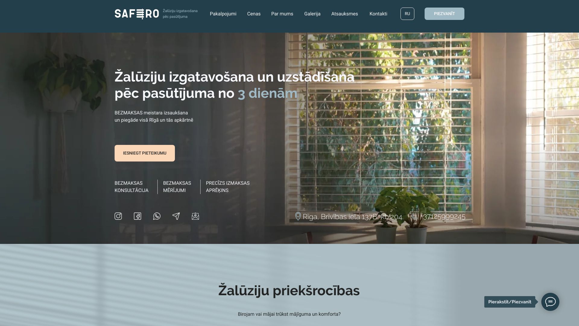 | Apraksts | Mēs "Safero" uzņēmums, mūsu pamatdarbība ir žalūziju, moskītu tīklu un aizsargžalūziju uzstādīšana. Mūsu amatnieki un speciālisti, kuri jau vairāk kā 7 gadus strādā gaismas aizsargkonstrukciju jomā, ir augsta līmeņa profesionāļi, tāpēc piedāvājam tikai augstas kvalitātes preces un pakalpojumus. Neskatoties uz visiem mūsu sasniegumiem, mēs nepārtraucam attīstīties, mācīties un apmeklēt dažādus pasākumus, piemēram, Eiropas izstādes, kas nosaka toni un standartus visai mūsu jomai. |