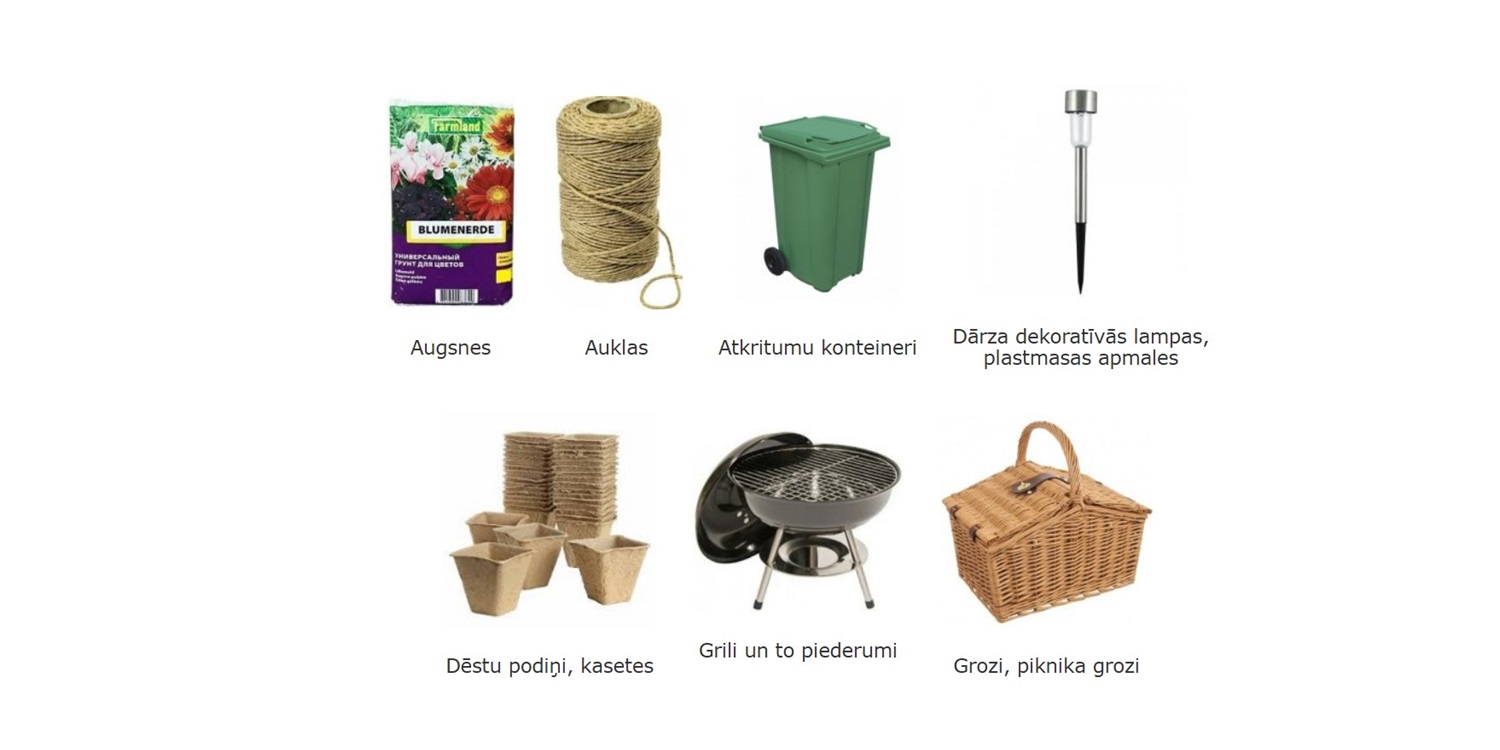 Saimniecības preces Rūjiena, Strenči, Valmiera, Elektropreces, Iesaiņojuma materiāli, Dārza preces, Sadzīves ķīmija, Sadzīves plastmasa, Uzkopšanas inventārs, Trauki, Preces bērniem, Mantu kastes, šūpoles, krēsliņi, Rotaļlietas, Spēles un kancelejas preces, Slidināšanās palikņi, kamaniņas, slēpes, Dārzam, Augsnes, Sīksīpoli, Auklas, Atkritumu konteineri, Dārza dekoratīvās lampas, plastmasas apmales, Dēstu podiņi, kasetes, Grili un to piederumi, Lamatas,...
