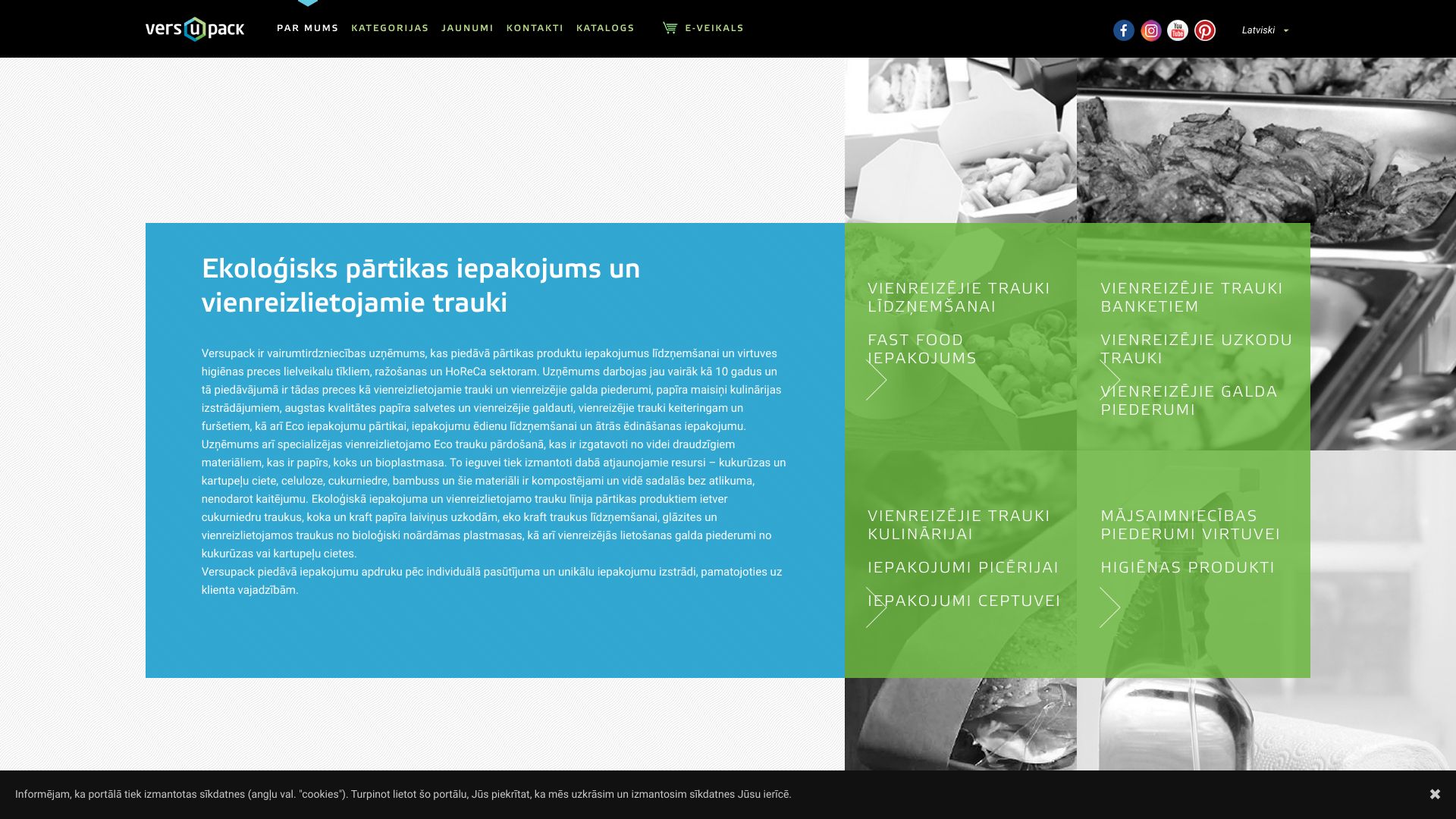 | Apraksts | Versupack ir vairumtirdzniecības uzņēmums, kas piedāvā plašu sortimentu iepakojumu un vienreizlietojamo trauku sfērā - pārtikas ražotnēm, lielveikalu tīkliem un Horeca uzņēmumiem. Specializējamies uz konceptuāli jauniem risinājumiem un dodam priekšroku videi draudzīgiem materiāliem un ražošanas procesiem, kuri nekaitē ekoloģijai un apkārtējai videi, piedāvājot saviem klientiem iepakojumus no pārstrādājamas bioplastmasas, papīra, kukurūzas un kartupeļu cietes, cukurniedres, bambussa un alumīnija. Darbojamies jau vairāk nekā 10 gadus, piedāvājumā trauki līdzņemšanai un piegādei, visa veida vienreizlietojamie iepakojumi ēdienu pasniegšanai, banketiem un avio keiteringam. Dažādi produkta veidi no eko materiāliem – vienreizlietojamie šķīvji un glāzes, papīra maisiņi, bioloģiski noārdāmi piederumi, papīra salvetes un galdauti, kulinārijas termotrauki un citi augstas kvalitātes iepakojumi. Mūsu mērķis – piedāvāt labāko, mūsdienīgāko un visefektīvāko risinājumu Jūsu biznesam. |
