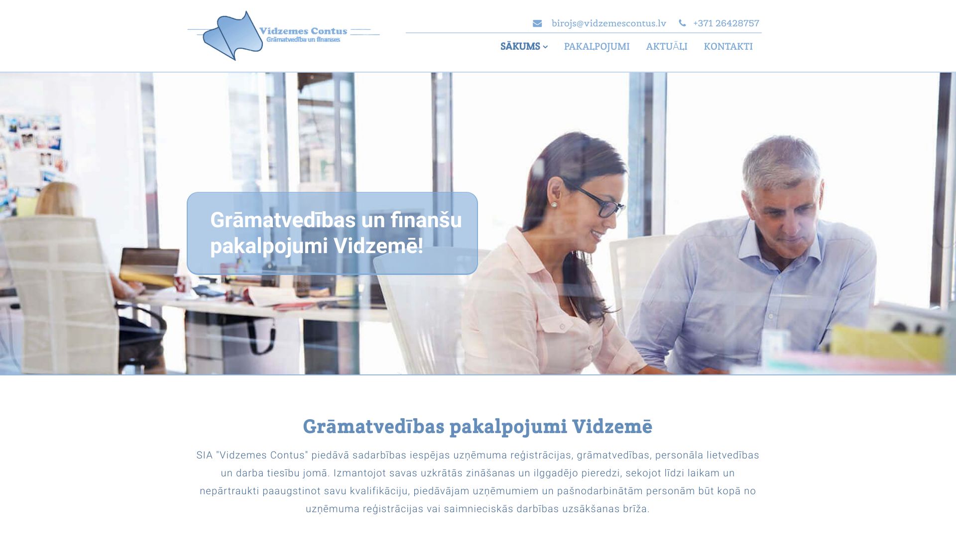 | Par uzņēmumu | SIA "Vidzemes Contus" piedāvā sadarbības iespējas uzņēmuma reģistrācijas, grāmatvedības, personāla lietvedības un darba tiesību jomā. Izmantojot savas uzkrātās zināšanas un ilggadējo pieredzi, sekojot līdzi laikam un nepārtraukti paaugstinot savu kvalifikāciju, piedāvājam uzņēmumiem un pašnodarbinātām personām būt kopā no uzņēmuma reģistrācijas vai saimnieciskās darbības uzsākšanas brīža. |