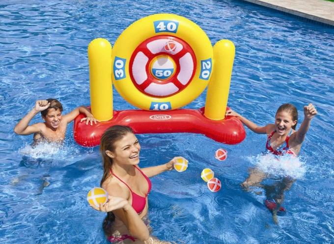 Pelde baseinā patiks ikvienam, taču, lai to padarītu vēl jautrāku un aizraujošāku, iespējams izvēlēties kādu no baseinam paredzētajām atrakcijām. Piemēram, piepūšamā disku mešanas spēle vai piepūšamais dārts patiks gan bērniem, gan pieaugušajiem.