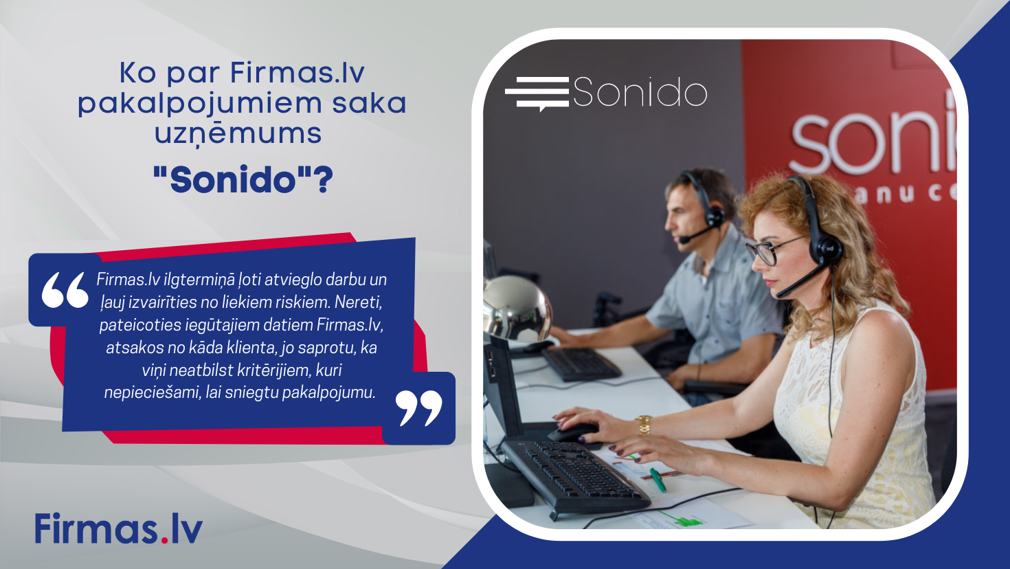 “Sonido” jau desmit gadus specializējas telemārketinga un klientu apkalpošanas ārpakalpojumu sniegšanā. Mēs nodrošinām vairākus pakalpojumus, lai palīdzētu uzņēmumiem sasniegt savus mērķus, palielināt pārdošanas apjomus un uzlabot klientu apkalpošanu. Mūsu zvanu centra komandā strādā cilvēki, kuriem ir plaša pieredze klientu apkalpošanas, telemārketinga un pārdošanas jomā. Viņi ir apmācīti, lai izprastu klientu vajadzības un izmantotu visefektīvākos risinājumus, lai palīdzētu uzņēmumiem sasniegt savus mērķus.